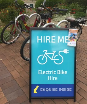 Electric bicycles or ‘e-bikes’ are bikes equipped with a small electric motor that provides assistance up to 25km/hr. It’s like riding with a permanent tailwind!